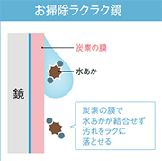 汚れが付きにくく落としやすいから、簡単・ピカピカ。きれいな鏡で気持ちのよいバスタイムに。