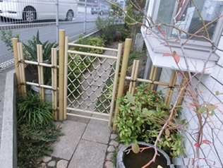 伝統が息づく【竹垣】の奥に続く敷石の風情からは、