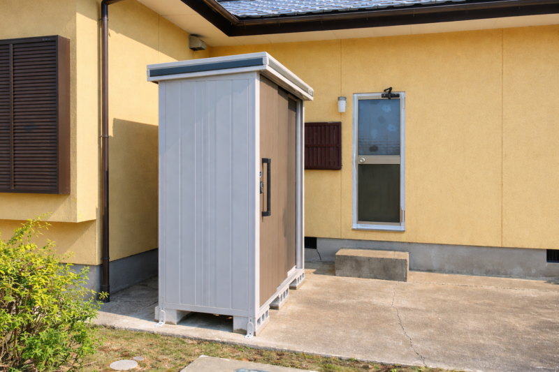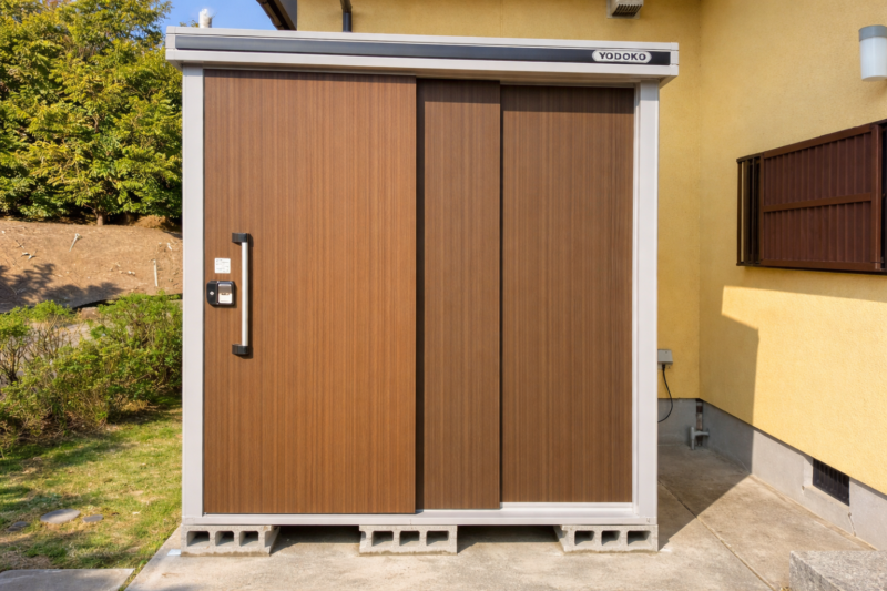 ヨド物置「エルモ・LMD-1808」を設置し、屋外に散らかりがちな荷物をすっきり収納できるようになりました。