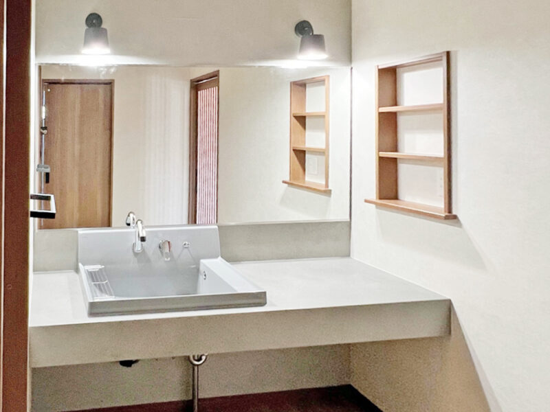 フルリノベーションに伴い、空間を一から見直し、LIXILのカスタムバニティをベースにゆとりある洗面スペースへ再構成しています。