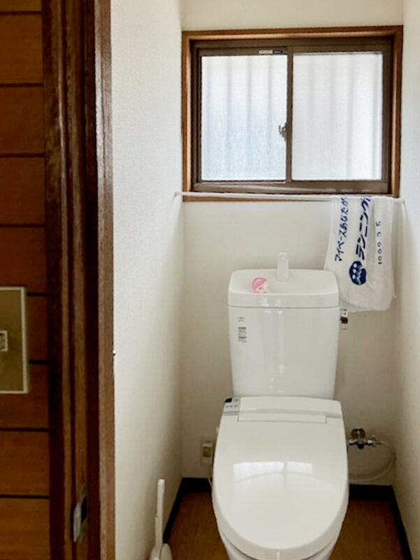既存のトイレはタンク付きでやや圧迫感があり、全体的に昔ながらの印象でしたが、今回のフルリノベーションに伴い、Panasonicのアラウーノを採用し、空間を一新しました。
